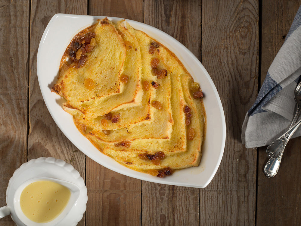Bread and Butter Pudding: A comforting and indulgent dessert made with layers of buttered bread soaked in a rich custard mixture, flavored with vanilla and spices. Baked until golden and served warm, it's a classic dessert that's perfect for satisfying sweet cravings.