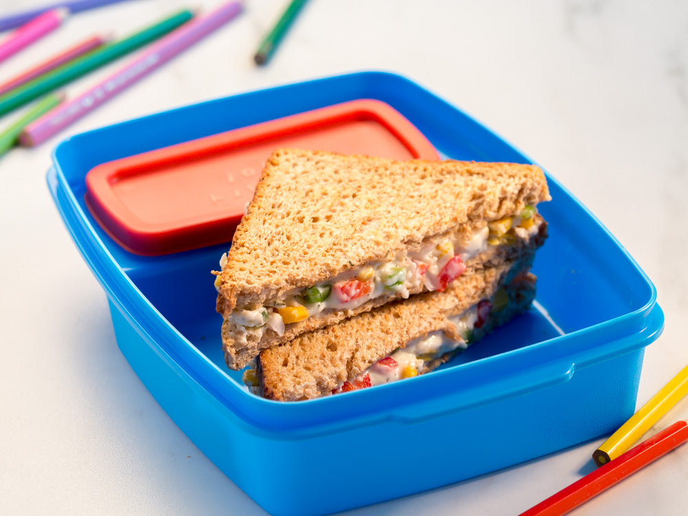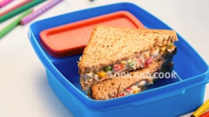 A delicious and convenient choice for packed lunches, featuring toasted bread topped with a flavorful mixture of cheese and corn. It can be enjoyed at room temperature and is a satisfying and kid-friendly option for a tasty lunch on the go.