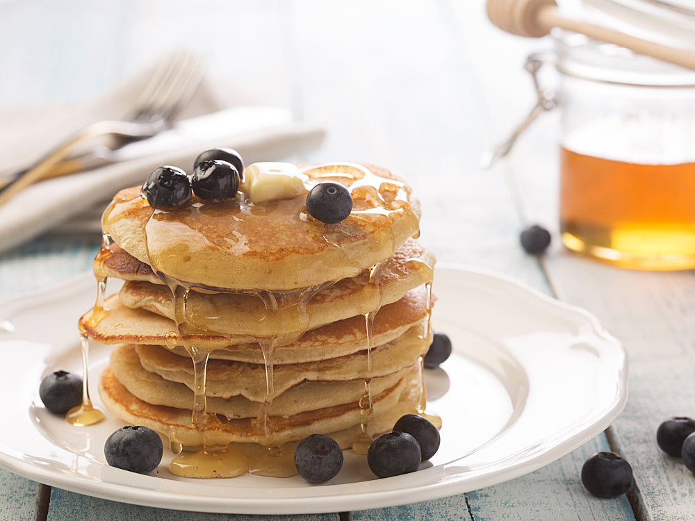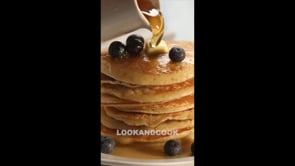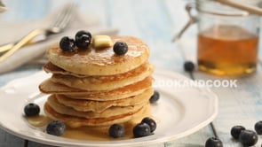 Pancake: A flat and round breakfast treat made from a simple batter of flour, eggs, milk, and butter, cooked on a griddle or pan. Enjoy with syrup or toppings of your choice.